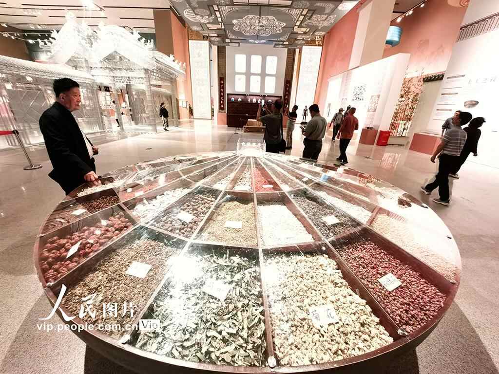 本次展览设置"文脉赓续 大医精诚""生命智慧 上工之道""四时颐养 形与神俱"三大主题单元,集中展示近50项传统医药类非物质文化遗产代表性项目,全方位呈现中医药作为"开启中华文明宝库之钥匙"的多元价值体系。樊甲山摄(人民图片网)