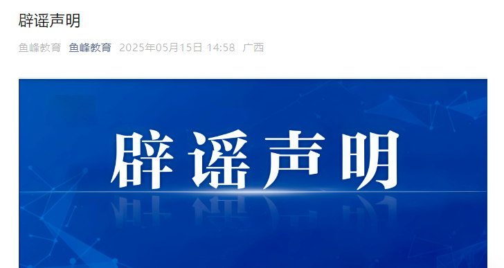 5月15日,广西柳州鱼峰区教育局发布辟谣声明,详情如下——