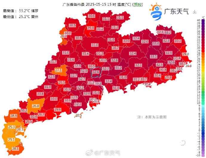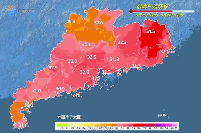 除了湛江雷州、遂溪、阳江、高州等地受降水影响气温有所下降以外,昨天广东其余地区最高气温普遍超过30℃,最高温第一名由蕉岭34.4℃夺得。广州只分到了一点散装的雷雨,闷热没有得到缓解。