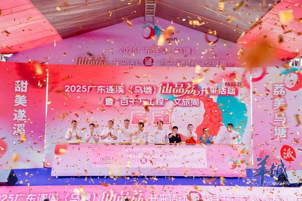 盛夏将至,荔红满枝。在广东最早上市的荔枝产区,5月15日,2025广东遂溪(乌塘)仙品荔开采活动暨“百千万工程”文旅周在湛江市遂溪县乌塘镇新屋村举行,跑出了今年广东荔枝营销的第一棒。