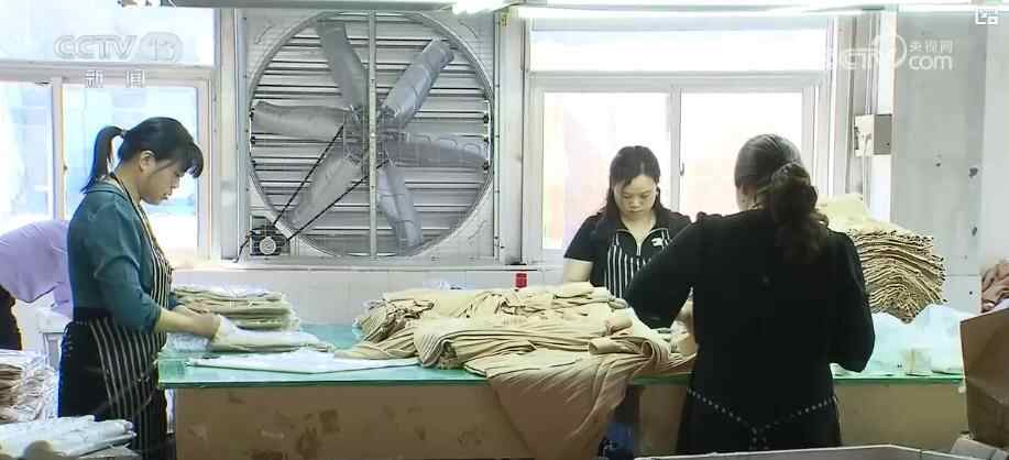 在上海松江区李塔汇镇的这家针织厂,全员上岗,缝商标、熨烫、打吊牌,各个工序有条不紊。