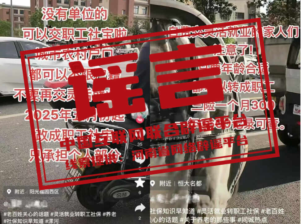 真相:近日,河南省漯河市委网信办接到网民举报,有平台账号发布视频称“没有单位的可以交职工社保啦”“不要再交灵活就业了,2025年五月份起改成职工社保,只承担个人部分”“交灵活就业的只要年龄合适都可转成职工三险,一个月300”,引发社会关注。经漯河市人力资源和社会保障局核实,以上内容均为虚假信息。根据相关法律法规规定,灵活就业人员以企业职工身份、由企业代缴社会保险费,属于虚构劳动关系、骗取社保待遇的违法行为。请广大市民按照政策规定的要求和渠道办理社保手续,谨防上当受骗、损失钱财。(来源:“清朗河南”微信公众号)