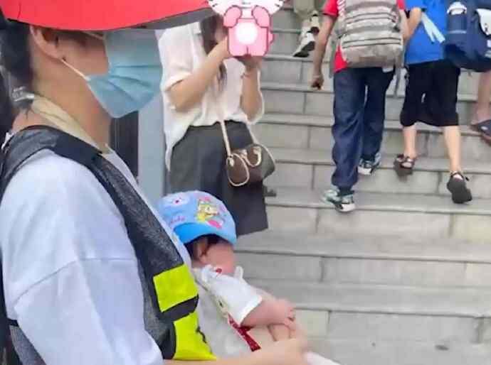 5月13日,广西百色一女子发视频称,自己孩子在右江区实验小学上三年级,学校家委会强制给家长排班轮值护学岗,自己被迫抱着2个月大的婴儿站岗。