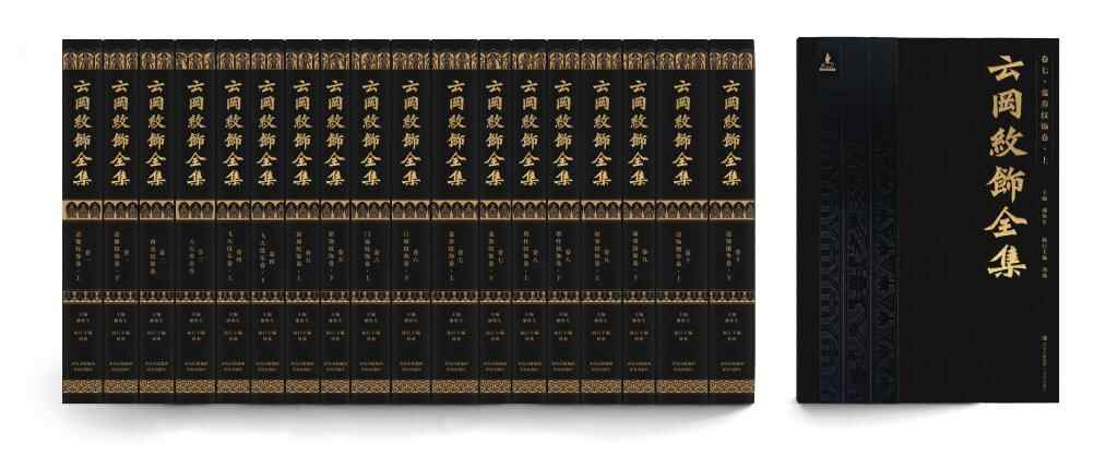《云冈纹饰全集》以建筑空间与纹饰艺术形制为分类依据,共18卷,涵盖10类纹饰谱系,绘制纹饰近2万幅,包括《造像纹饰卷》《背光纹饰卷》《天衣璎珞卷》《飞天伎乐卷》《窟顶纹饰卷》《门窗纹饰卷》《龛券纹饰卷》《塔柱纹饰卷》《故事纹饰卷》《边饰缀华卷》等,每卷包含研究云冈纹饰的专论、实物文献、线描图稿、雕刻图稿和色彩图稿。