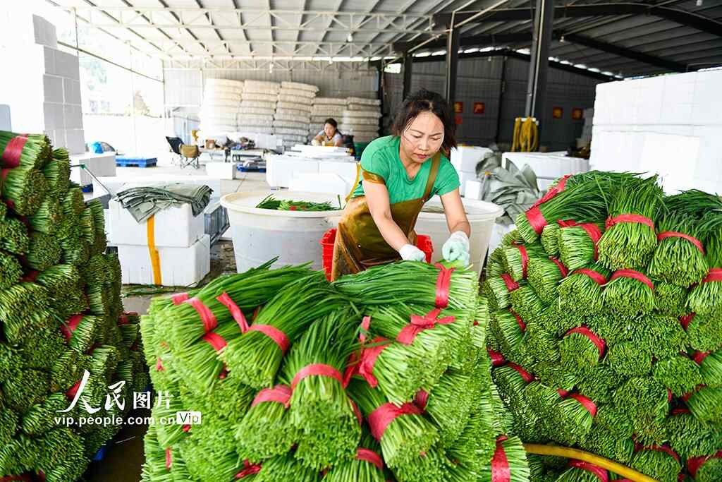 近年来,安龙县德卧镇利用地势平坦、土质肥沃、水源丰富等资源优势,引导农户大力种植韭菜,采取“党支部+合作社+农户”的发展模式,利用“保底收购+随行就市”的灵活定价机制,将种植的韭菜销售到上海、广州、深圳、重庆、陕西、湖北等市场。刘朝富摄(人民图片网)