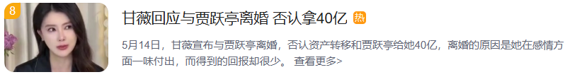 随后,话题“甘薇回应与贾跃亭离婚 否认拿40亿”冲上热搜。