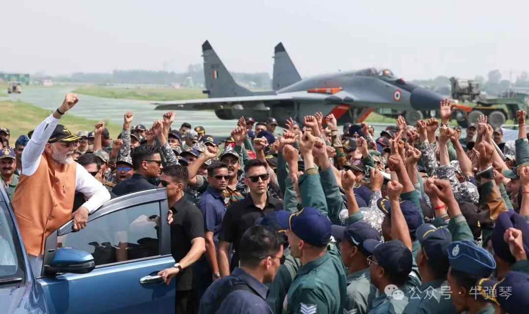 印度总理莫迪5月13日更是前往印巴边境,到访亚当布尔空军基地,用他的话说,“我与英勇的空军战士见面”。