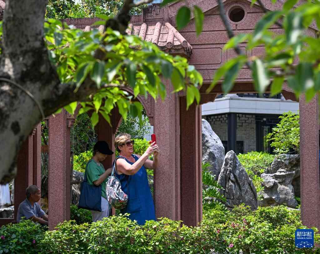 游客在位于永庆坊的李小龙祖居游览(5月13日摄)。