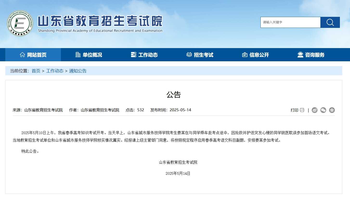 据山东省教育招生考试院14日消息,2025年5月10日上午,我省春季高考知识考试开考。当天早上,山东省城市服务技师学院考生姜某在与同学乘车赴考点途中,因抢救并护送突发心梗的同学就医耽误参加首场语文考试。当地教育招生考试单位和山东省城市服务技师学院核实情况属实。经报请上级主管部门同意,将按照规定程序启用春季高考语文科目副题,安排姜某参加考试。