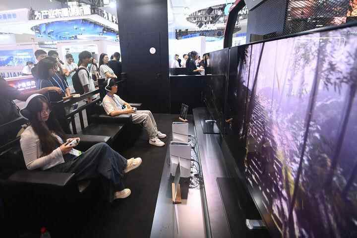 观众在第三届全球数字贸易博览会的游戏科学展区体验国内首款3A游戏“黑神话·悟空”(2024年9月25日摄)。新华社记者 黄宗治 摄