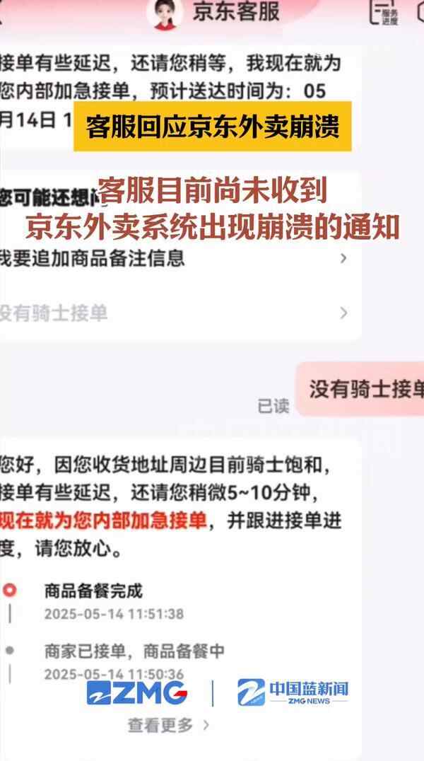 “京东外卖页面崩了?”5月14日中午,多名网友发截图称,订购的京东外卖没有骑手接单配送、出现订单延迟等情况,引发关注。