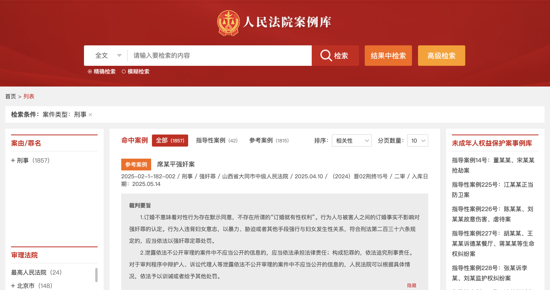 5月14日,根据人民法院案例库公开案例显示,山西大同“订婚强奸案”被列入最高人民法院发布的参考案例。
