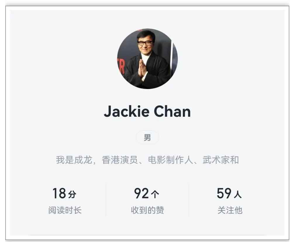 此“成龙”究竟是不是彼成龙呢?羊城晚报记者向微信读书工作人员求证。工作人员表示,微信读书作为电子阅读平台,用户的身份认证围绕书籍相关逻辑展开,因此只有作者认证、出版社认证和荐书达人认证,不涉及明星等人群认证。认证作者的个人主页会有一个特殊标记,此外别无其他身份认证体系。