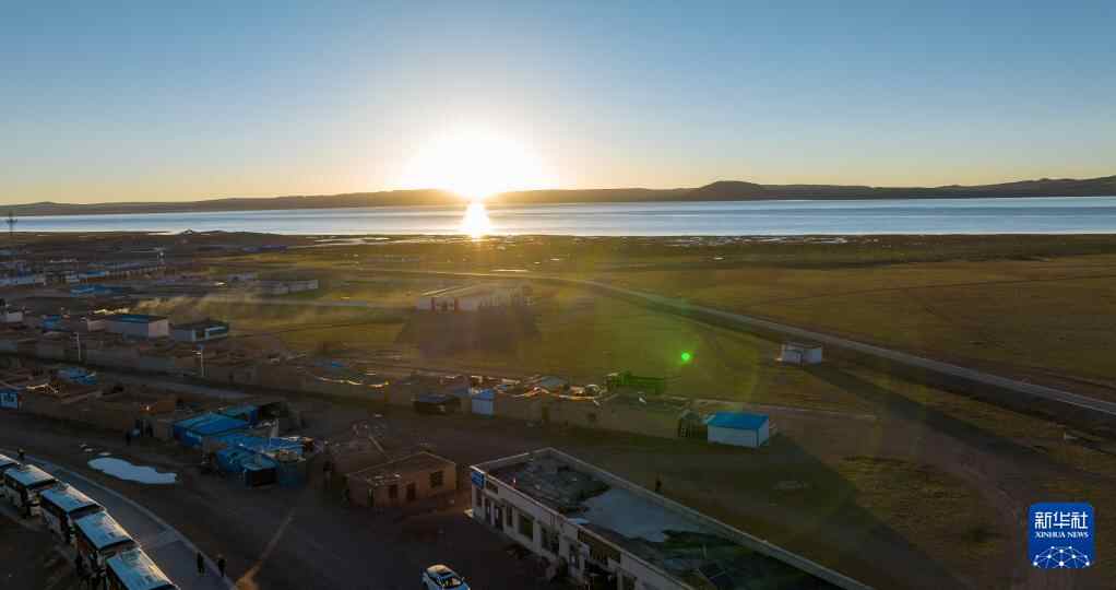 那曲双湖县多玛乡果根擦曲村的清晨(2022年7月12日摄,无人机照片)。