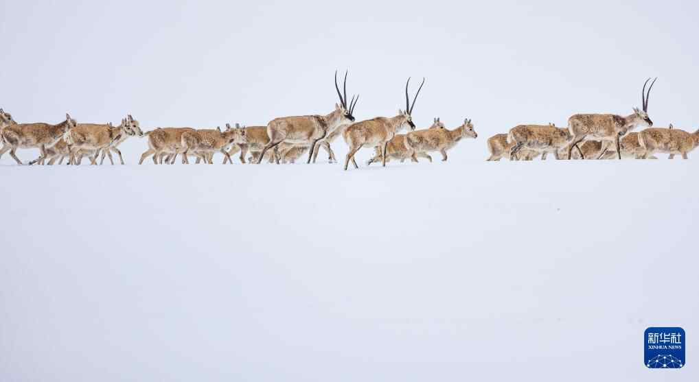 2024年5月8日,在那曲市尼玛县,西藏羌塘国家级自然保护区藏羚羊向产羔地迁徙。