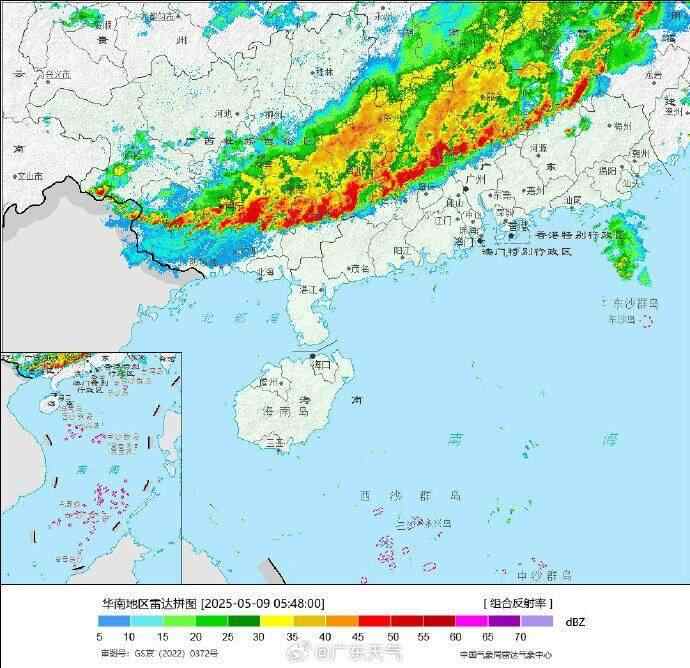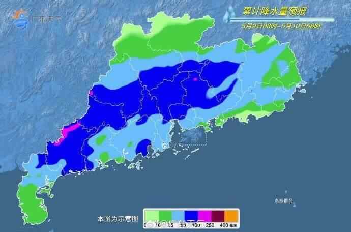 中央气象台5月9日06时发布暴雨蓝色预警:预计,5月9日08时至10日08时,广西东部和南部、广东大部、福建西北部和东南部、海南岛东北部、浙江东南部、华北东部等地部分地区有大到暴雨,其中,广西东部、广东西部等地局地有大暴雨(100~150毫米)。上述部分地区伴有短时强降水(最大小时降雨量30~50毫米,局地可超过80毫米),局地有雷暴大风或冰雹等强对流天气。