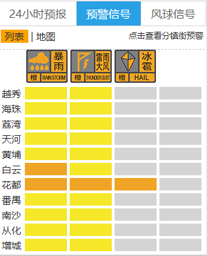 截至9日8时35分,广州11区暴雨、雷雨大风预警生效,花都区发布了橙色冰雹预警。据@广州天气 消息,目前强对流已南压影响白云和市区,黄埔番禺和增城南部也将转明显雷雨。
