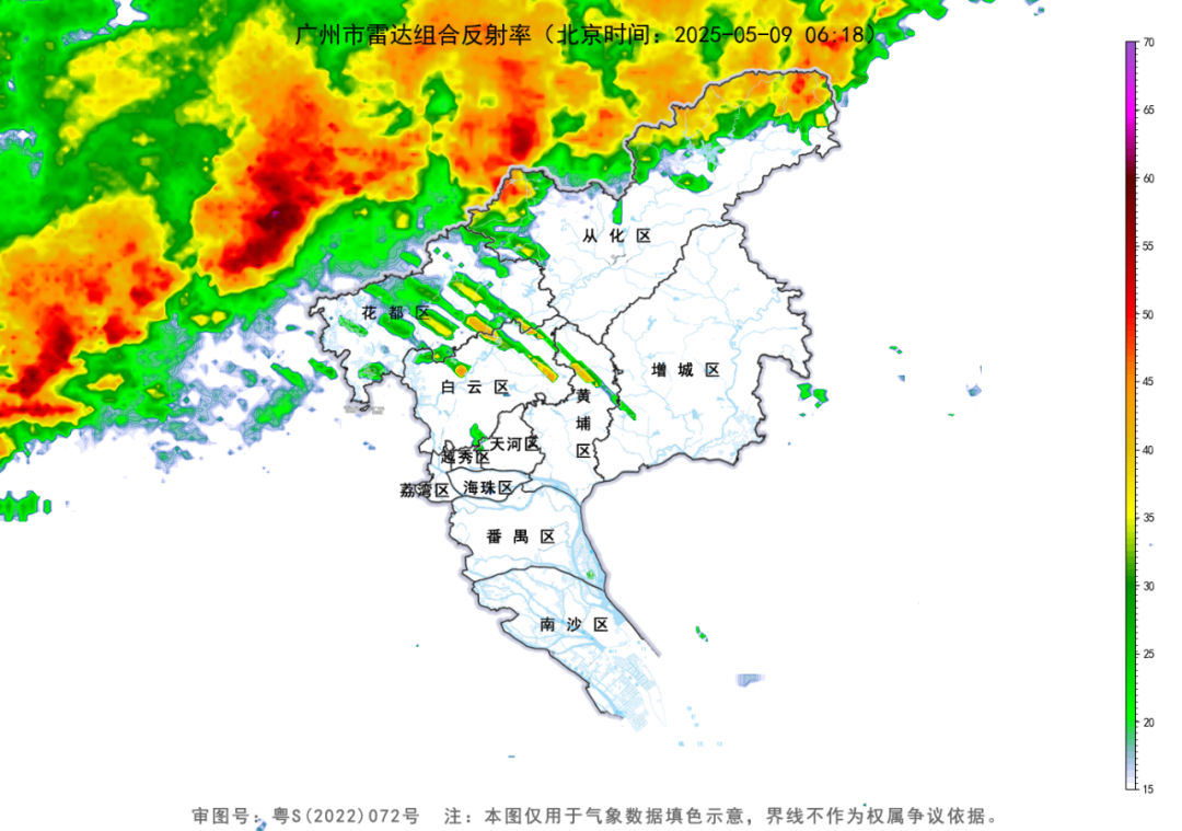 气象雷达拼图可见,强对流云系已南压至广州以北