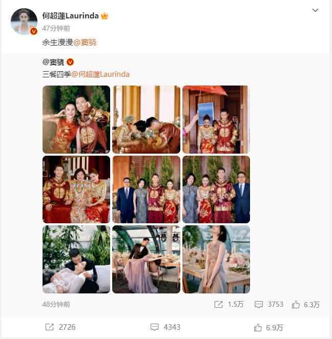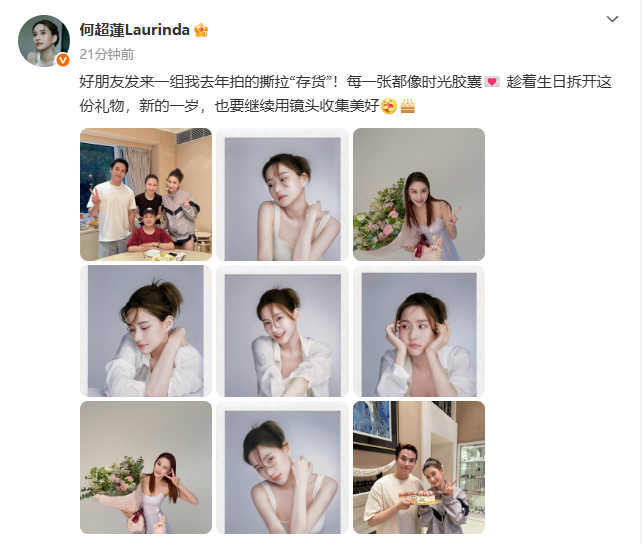 稍晚时间,何超莲在微博发布了生日贺图,表示庆生合照其实是去年的存货。