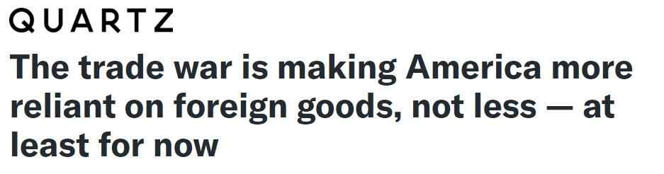 “3月贸易逆差超出预期揭示了一个意外后果:至少从目前看,贸易战使美国增加而非减少了对外国商品的依赖。”