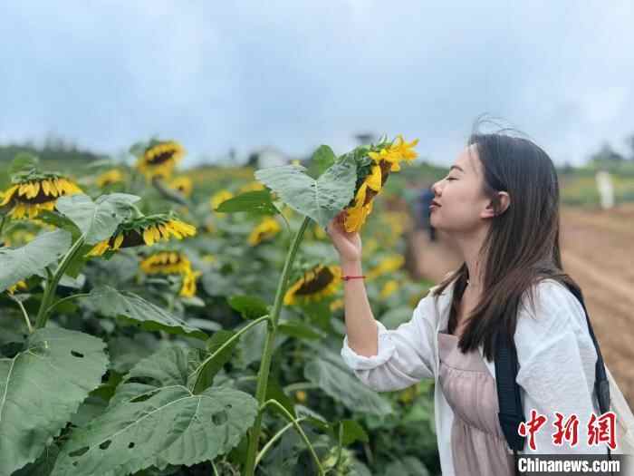 图为游客在油葵花海“打卡”。荣县融媒体中心供图