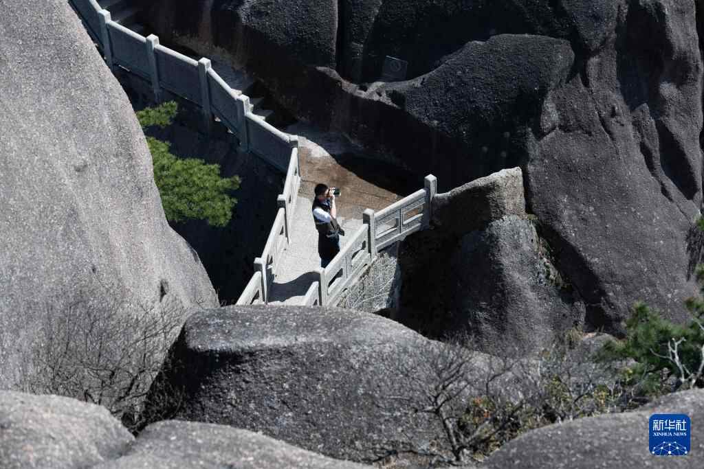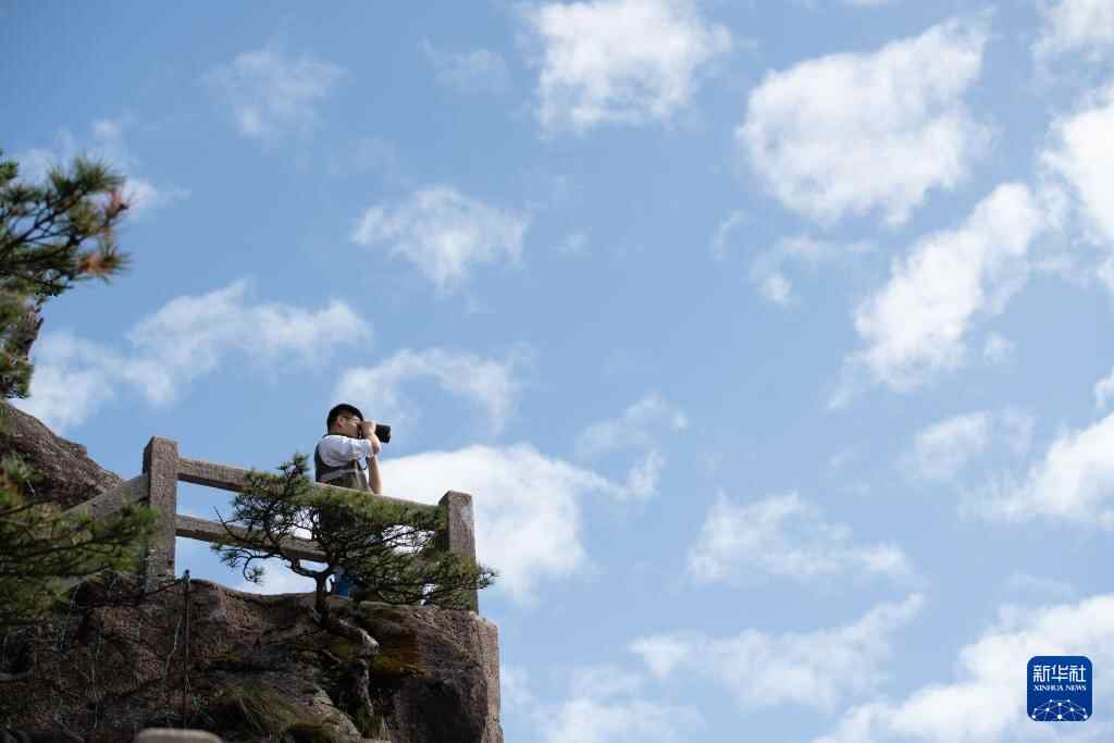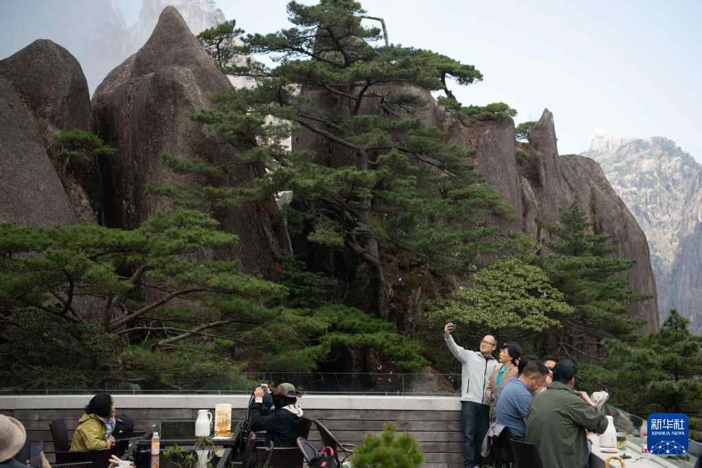 2025年4月23日,游客在黄山风景区休闲游玩。