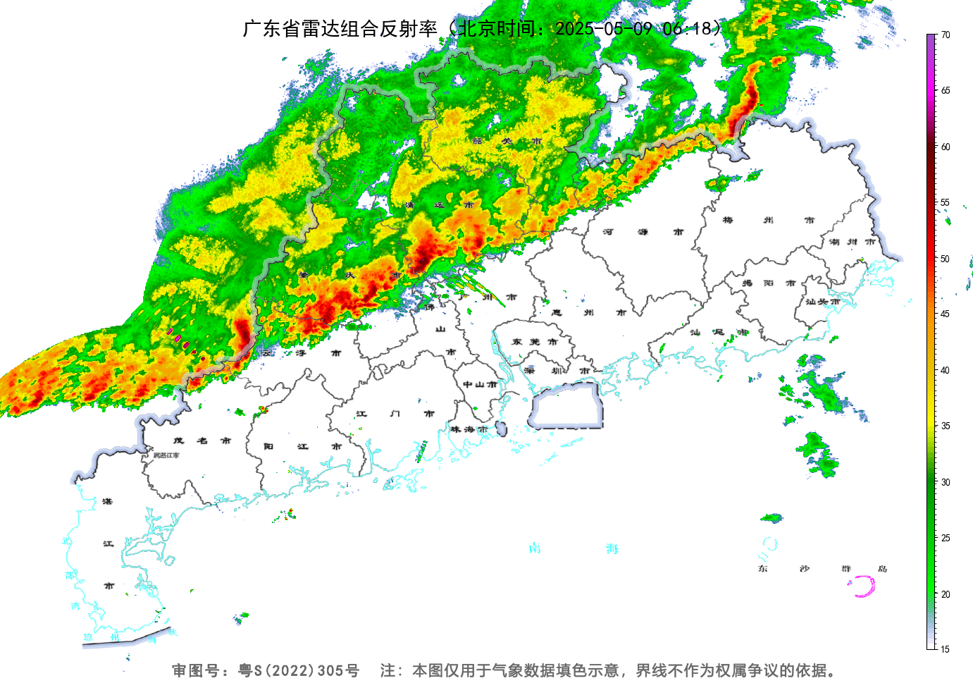 广东省气象局5月9日提醒,9日至10日的降水过程伴有飑线,其经过地区瞬时阵风可达8~10级,局地11~12级,各地需防范雷雨大风对水陆交通、城市运行、户外作业、低空飞行等的不利影响,做好防风加固工作,暂停户外作业、减少户外活动。本轮强降水落区与前期强降水集中区有重叠,粤北及珠江三角洲中北部市县地质灾害潜在风险较大,大暴雨点分散,但局地雨势强烈,个别站点最大小时雨量100毫米左右,需防范强降水导致的山洪、泥石流、滑坡、崩塌等灾害,同时需警惕水位上涨引发的中小河流洪水,并注意防御短时强降水引发的城乡积涝灾害。各地雨时能见度差,道路湿滑,请注意交通安全。