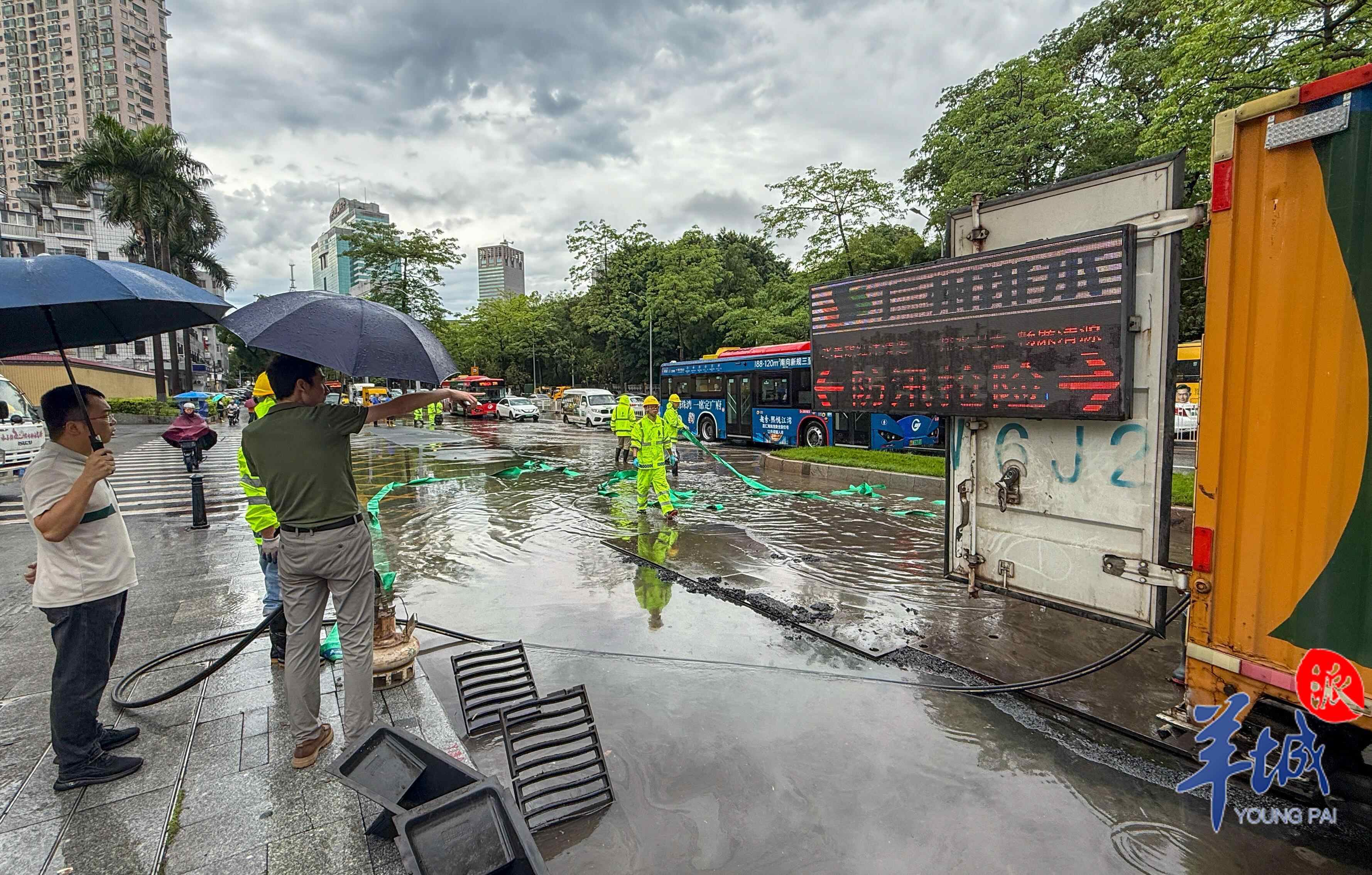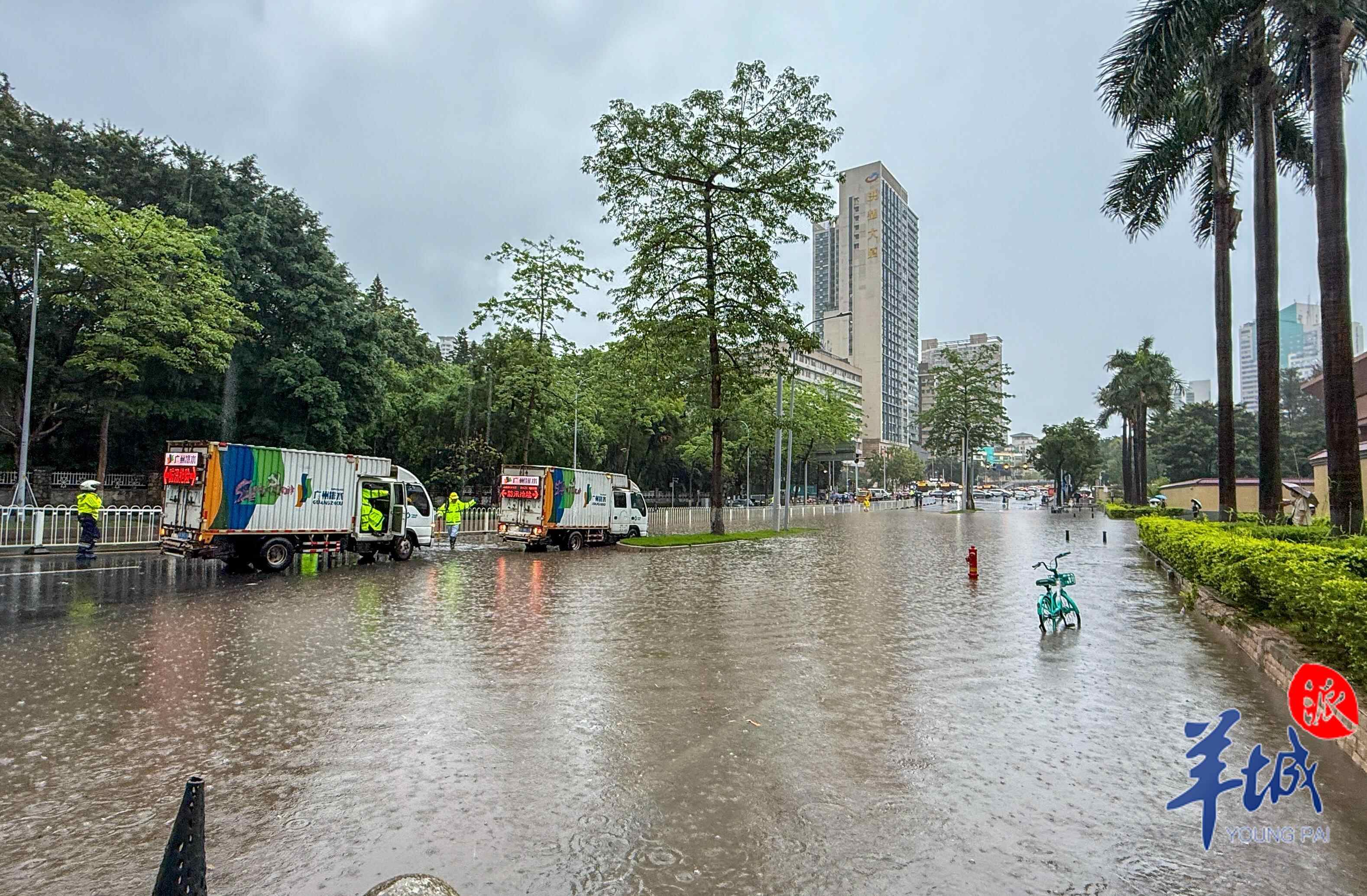 在越秀区先烈中路,早高峰时段在黄花岗七十二烈士墓路段出现积水,双向交通一度中断,连带周边道路共同拥堵。在公安、城管、应急、排水公司等抢险队伍努力下,9日11时前后现场积水开始逐渐消退,交通恢复正常。