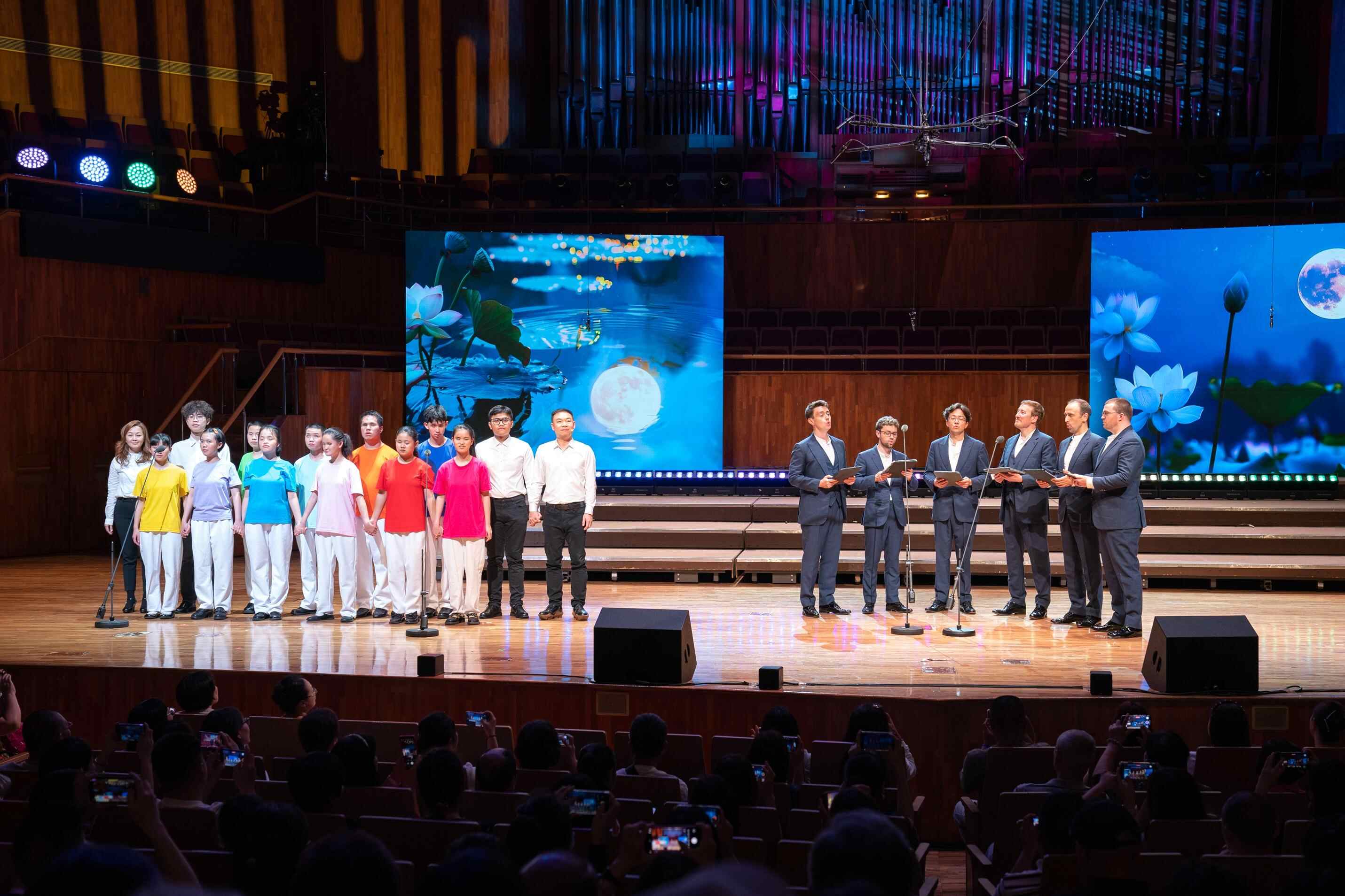 当晚,广州市启明学校学生和来自英国的国王歌手合唱团(The King's Singers)一起带来了合唱《月亮代表我的心》。国王歌手合唱团曾获格莱美奖和艾美奖,在听到老师说校合唱团将和他们共同演唱时,梁婉心既激动又紧张:“这是我第一次和国外的知名歌手同台演出。亲耳听到他们的无伴奏合唱时,真的是大开眼界。”梁婉心从小就喜欢音乐,在他人看来或许辛苦的声乐学习,对她来说却是放松自己的绝佳方式,“唱歌是一种享受。”
