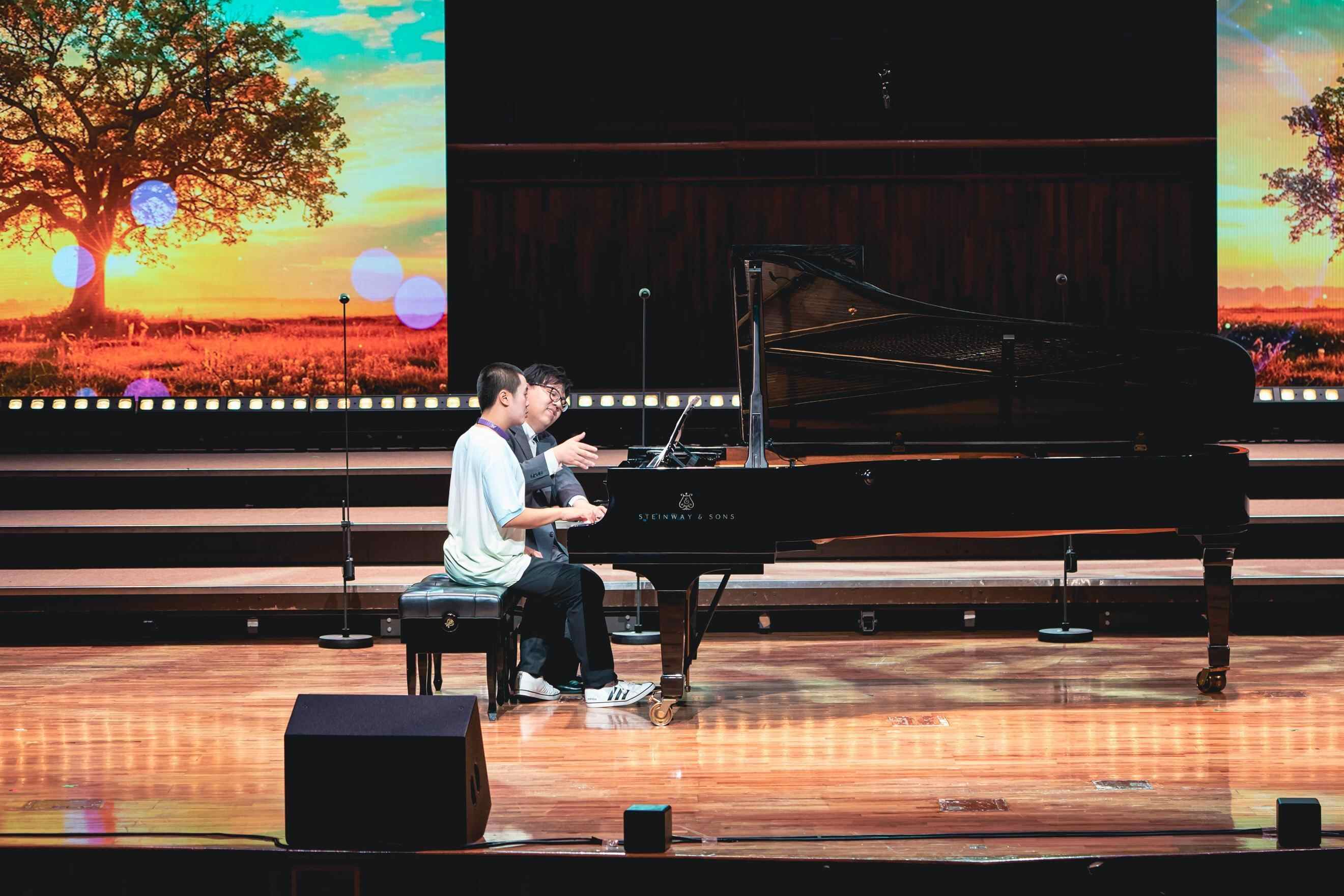 “他们的每一个节目都非常精彩,很荣幸能与这么多孩子们共同完成音乐作品,我乐在其中。”2024克利夫兰国际钢琴比赛冠军得主、青年钢琴家韦子健是第一次参与“音乐陪伴计划”,他为音乐会终曲《让世界充满爱》做钢琴伴奏,还与广州市南沙区启慧学校学生秦迦南带来四手联弹版的《橄榄树》。韦子健说,第一次配合的两个人在演出中设计了一些小桥段,先听秦迦南的演奏,之后再慢慢加入进来;用渐弱的方式处理乐句,互相抛出“问号”,让演出更有对话感。