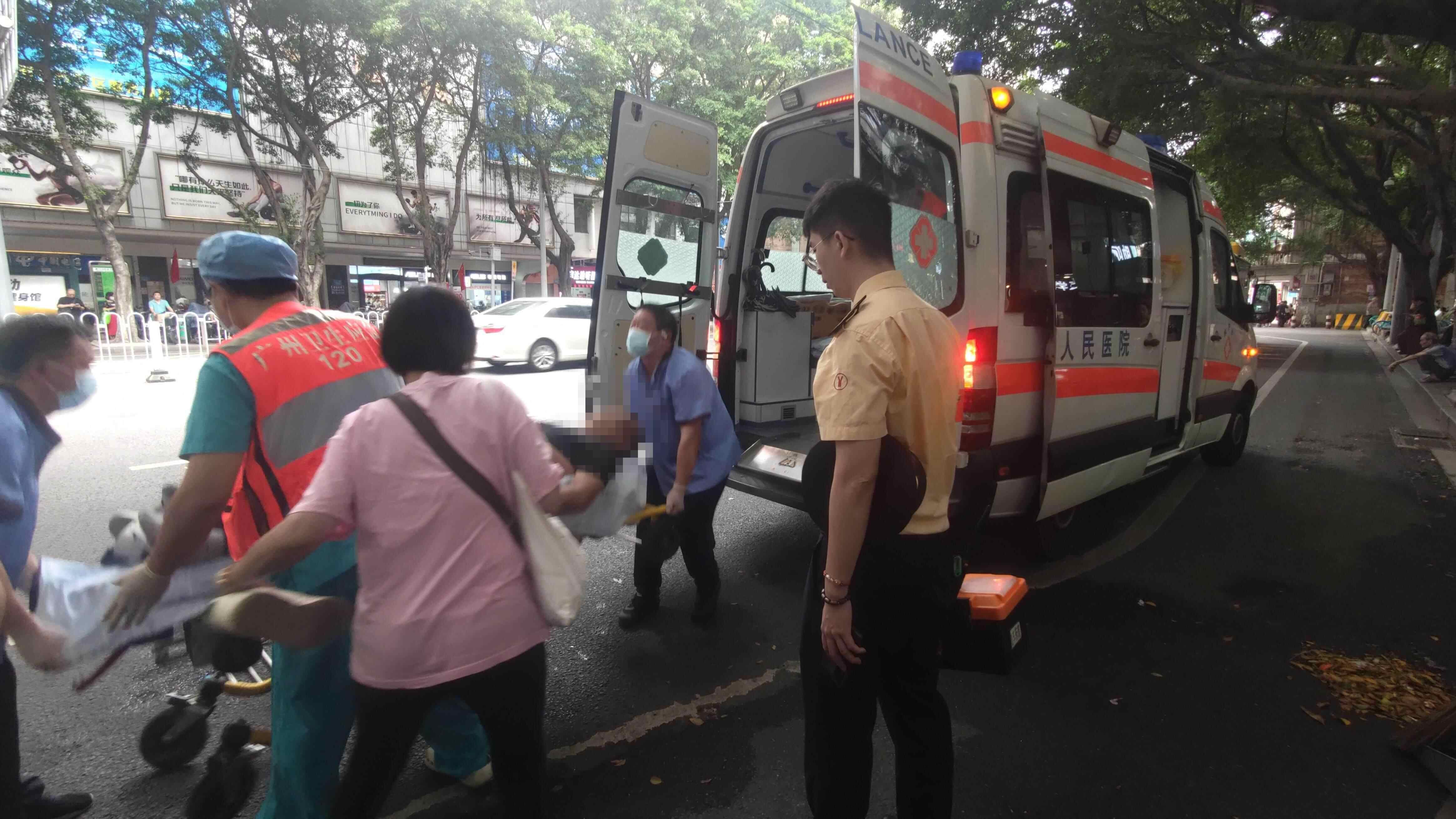 当天14:33,一号线西塱方向列车停靠在西门口站,一名身着黑色上衣的男乘客下车后,突然站立不稳,往前踉跄几步后扑倒在地,一旁陪同出行的家人惊慌失措地呼救,两名路过的热心乘客见状毫不犹豫上前帮忙。正在巡视的站务员林碧玉及时发现情况,迅速上前查看,发现男乘客呼吸急促,尚有微弱意识但无法起身,并用对讲机呼叫车控室启动应急预案。