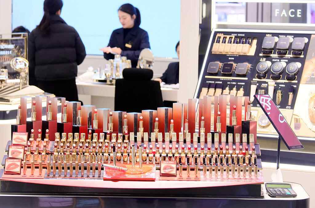 2025年3月底,江苏常州的一个美国品牌门店的美妆产品展示柜(图自视觉中国)