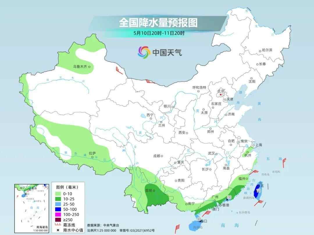 今日夜间到明天,福建东南部、云南东南部和中部、华南南部、海南岛、台湾岛等地部分地区有中到大雨,其中,台湾岛中北部等地部分地区有暴雨。