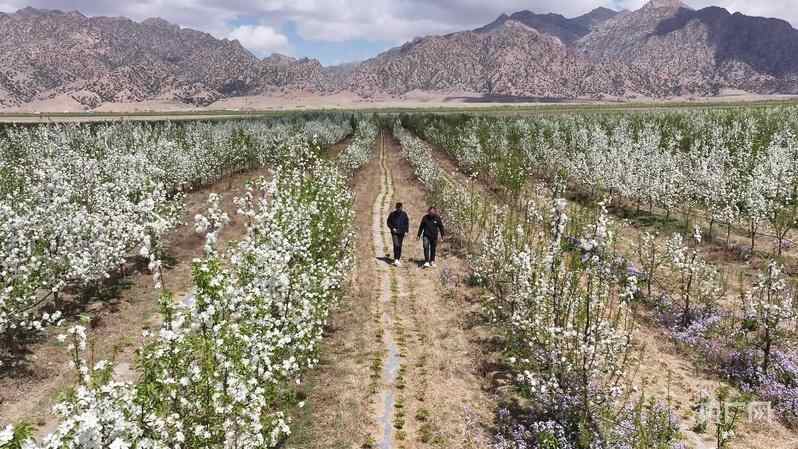 央广网巴彦淖尔5月7日消息(记者魏全民)步入内蒙古巴彦淖尔市乌拉特前旗白彦花镇塔汉其嘎查林果产业园,大片果树迎来最美花期,微风拂过,花香沁人心脾,果园里村民高忠标正专注地修剪着果树。“我今年60多岁了,在这里打工五六年了,一个月能挣五六千块钱,挺好的。”