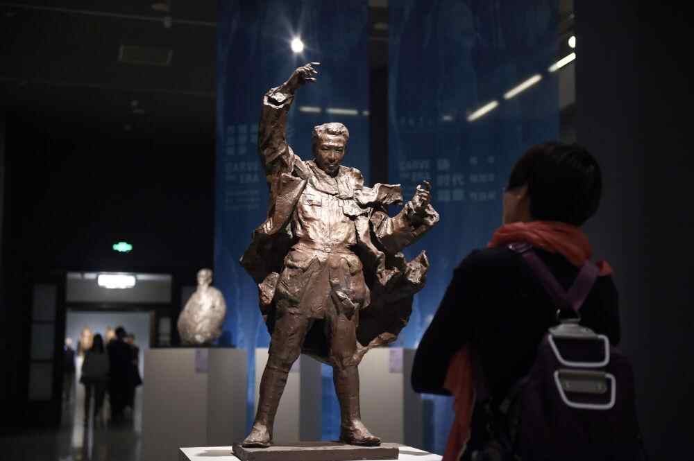 2018年4月1日,参观者在北京的中国美术馆参观雕塑作品“冼星海”。新华社记者 鲁鹏 摄