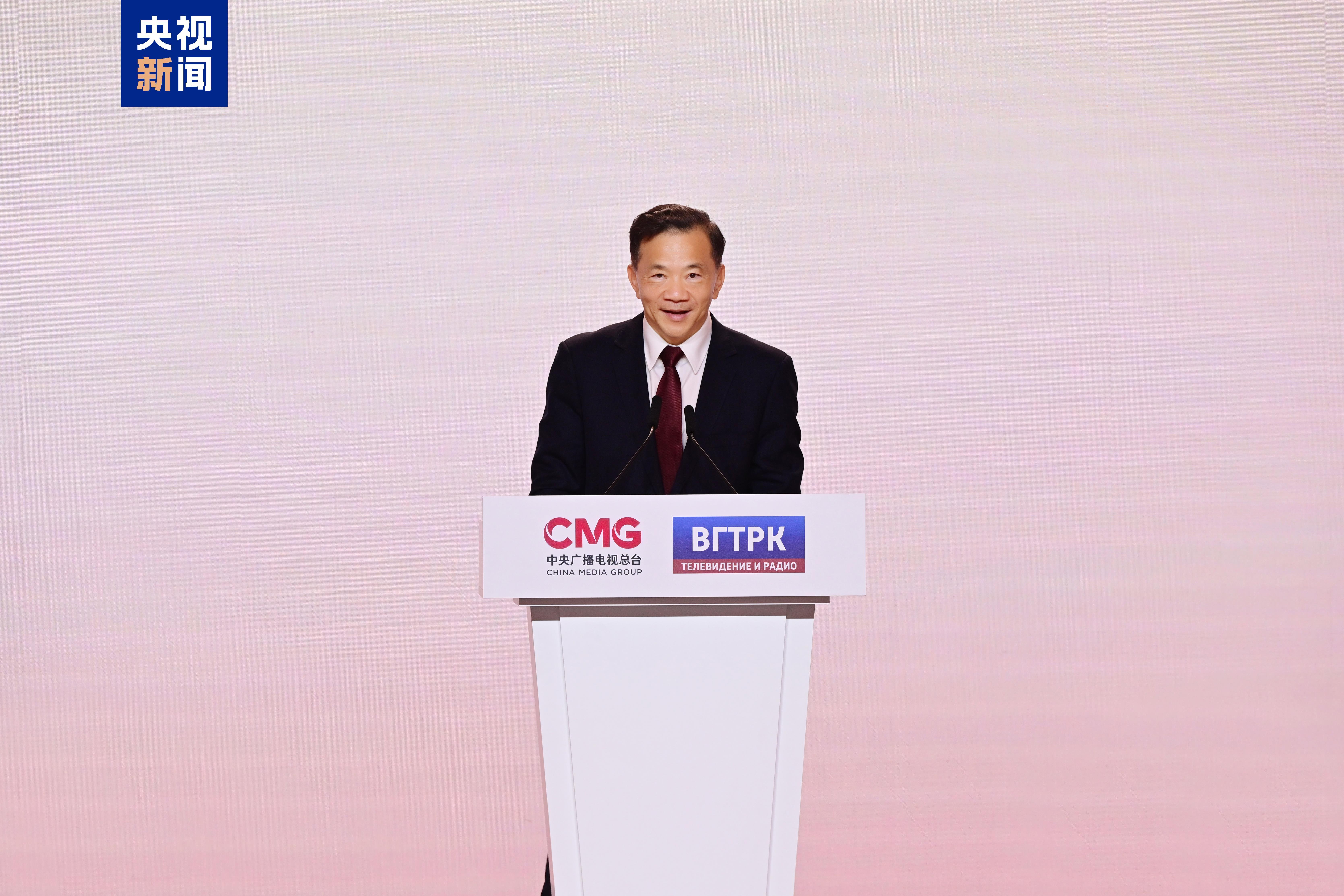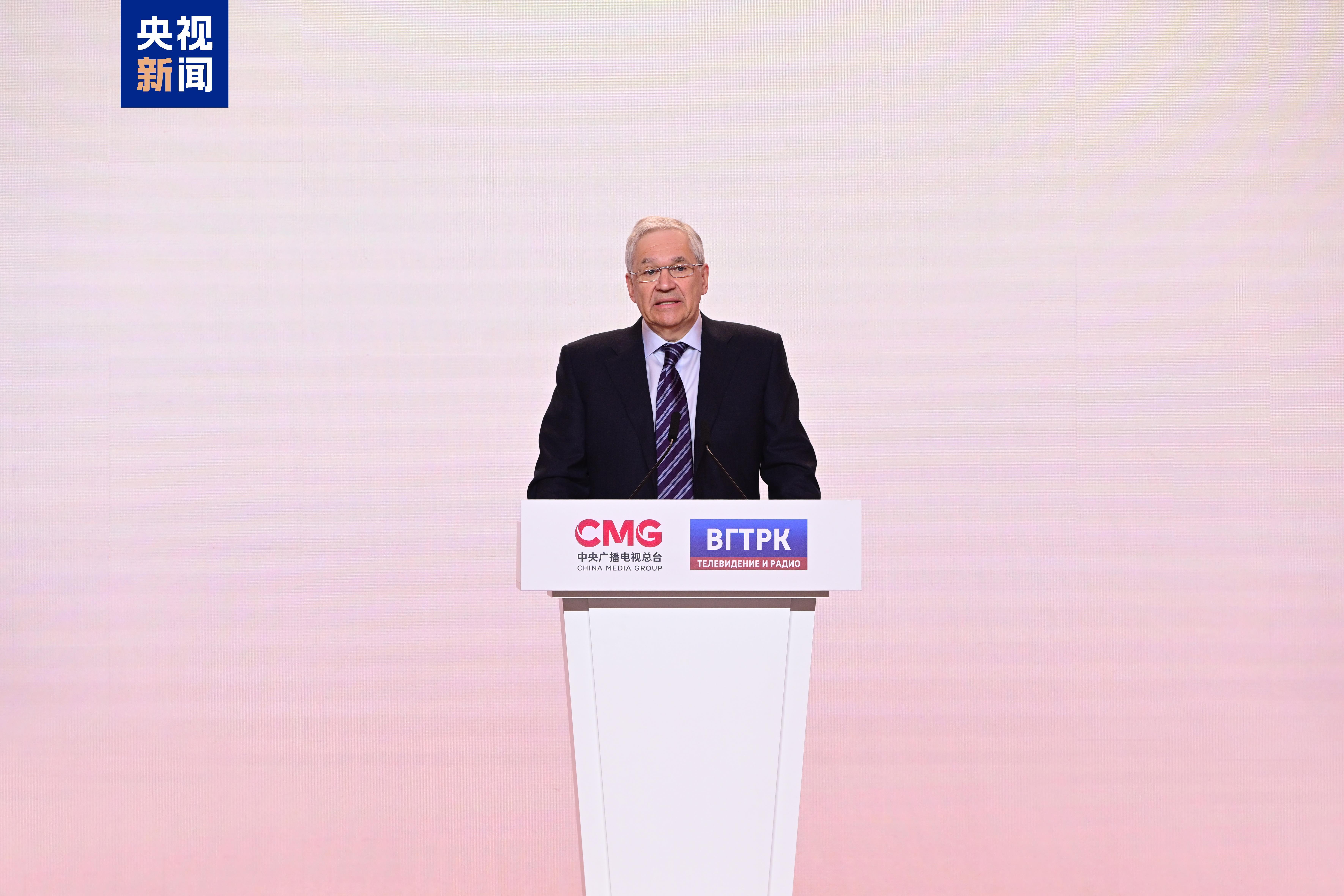 中宣部副部长、中央广播电视总台台长慎海雄在致辞中表示,习近平主席和普京总统的贺信让我们倍感振奋与鼓舞,这是对中央广播电视总台和全俄国家电视广播公司以及两国媒体人推进中俄友谊、深化交流合作成果的最高肯定。两国元首在贺信中的关切与期盼,必将激励两国媒体共担使命、携手并进,为推动中俄关系进一步发展、推动构建人类命运共同体作出新贡献。作为当今世界体量规模最大、业务形态最多、覆盖范围最广的综合性国际传媒航母,中央广播电视总台将以一档档精品力作搭建两国民心相通的文化桥梁、以更广泛的交流合作推动深化中俄新时代全面战略协作伙伴关系,为动荡不安的世界带来超越国界、超越对抗、追求共赢的理性之声,传递反霸道、讲公道、行大道的正义之声。在中俄文化年全面开展之际,让我们以习近平主席和普京总统的贺信精神为指引,在两国元首的掌舵领航下,以历史为镜、文明为舟,在单边主义逆流中开辟出多元共生的新航道,让中俄文化交流互鉴焕发勃勃生机,让两国人民的友谊历久弥新、生生不息。