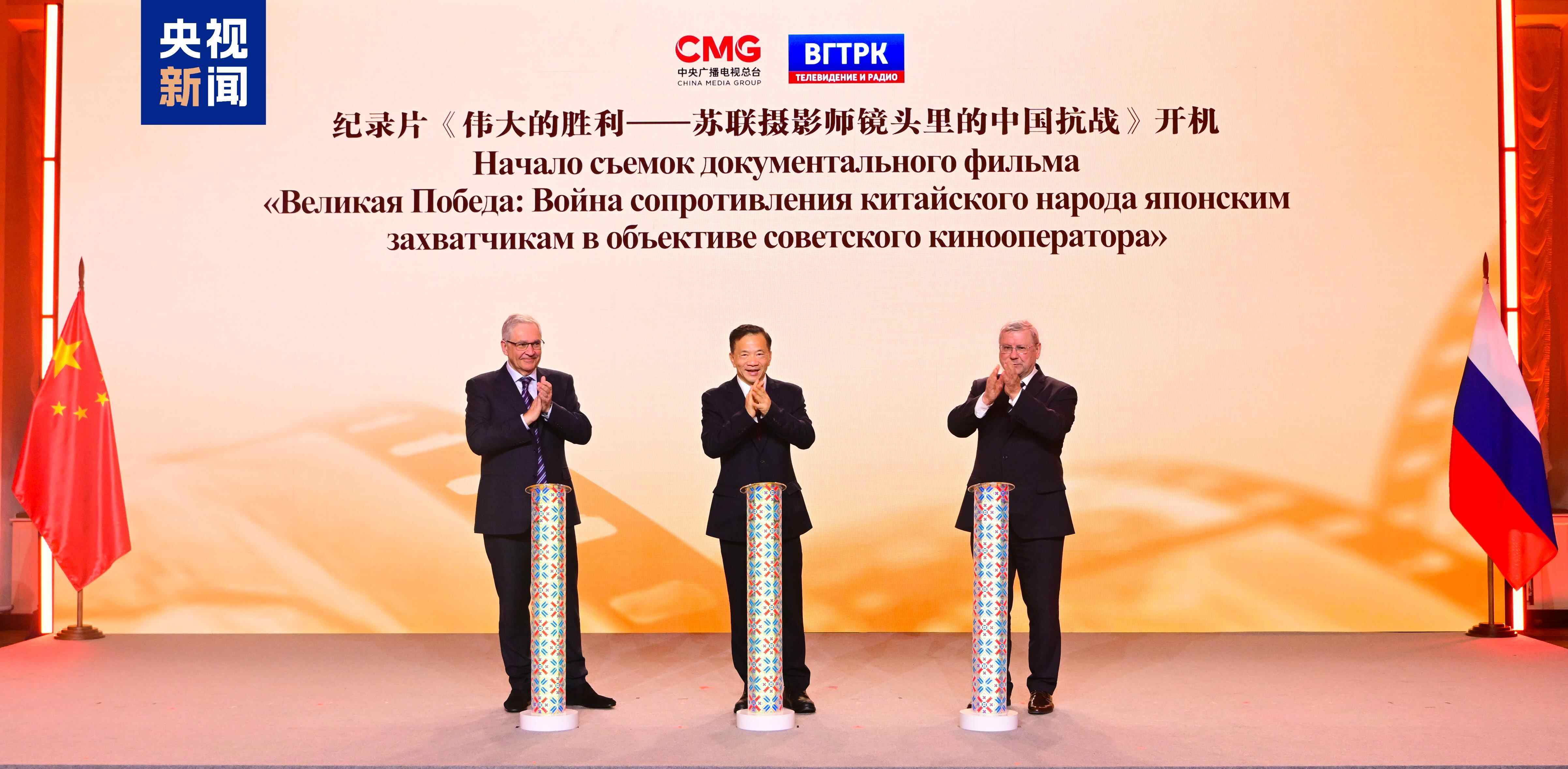 中俄合拍纪录片《伟大的胜利——苏联摄影师镜头里的中国抗战》同日开机,该片深度挖掘苏联摄影记者罗曼·卡尔曼在华经历及其拍摄的珍贵影像,生动呈现中国抗日战争波澜壮阔的历史画卷,彰显中国作为东方主战场在第二次世界大战中的卓越贡献。此外,俄方还向总台赠送了由俄罗斯国家档案馆珍藏的中国抗战时期珍贵历史影像资料。这是继新中国成立70周年和中俄建交70周年,俄方赠送开国大典等彩色影像资料后,中俄双方在联合开掘历史影像、共同制作精品节目方面的又一次重大合作。