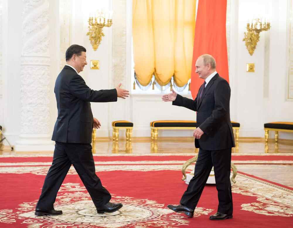 2019年6月5日,国家主席习近平在莫斯科克里姆林宫同俄罗斯总统普京会谈。这是两国元首在会谈前握手。