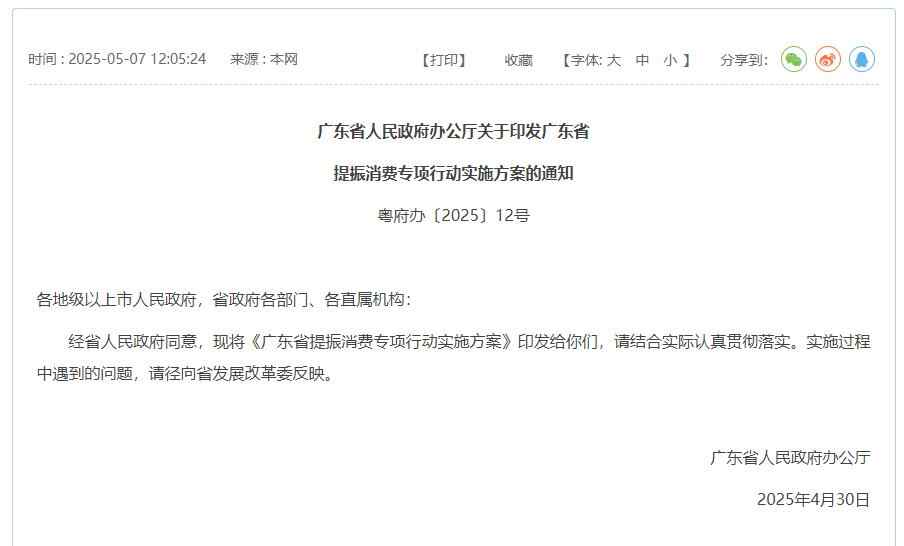 4月30日,广东省人民政府发布《广东省提振消费专项行动实施方案》(下称《方案》),旨在全方位扩大消费需求,大力提振消费。