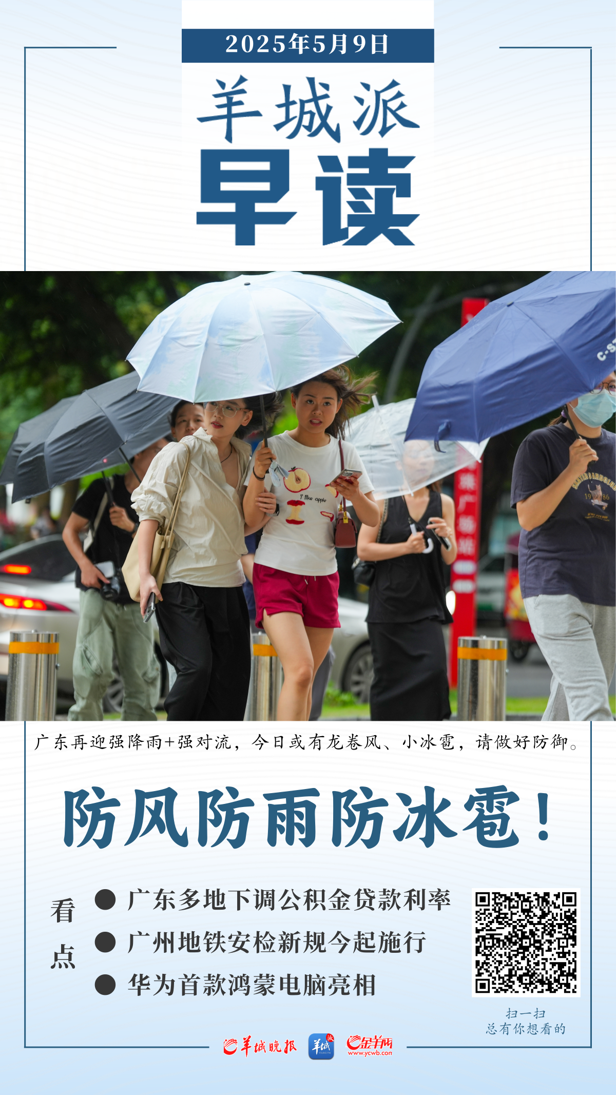 ◆或有龙卷风小冰雹!广东又有强降水,广州9日中午自北向南转雨。详情-->防御新一轮强降水,不仅仅只是“记得带伞”。详情-->