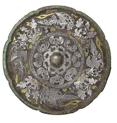 在金银交相辉映下,这面铜镜时至今日依然流光溢彩,其奥秘就在于“金银平脱”工艺。即用金银薄片裁成纹样,粘贴于铜器漆面上,周边再用漆涂满,经研磨抛光再錾花,形成富丽堂皇、精丽雅致的艺术效果。它从最早出现于商代的金银箔贴花技术演变而来,后经历了战国、汉代较长时期的发展。到了唐代,工匠将“金银平脱”创造性地运用在铜镜之上。