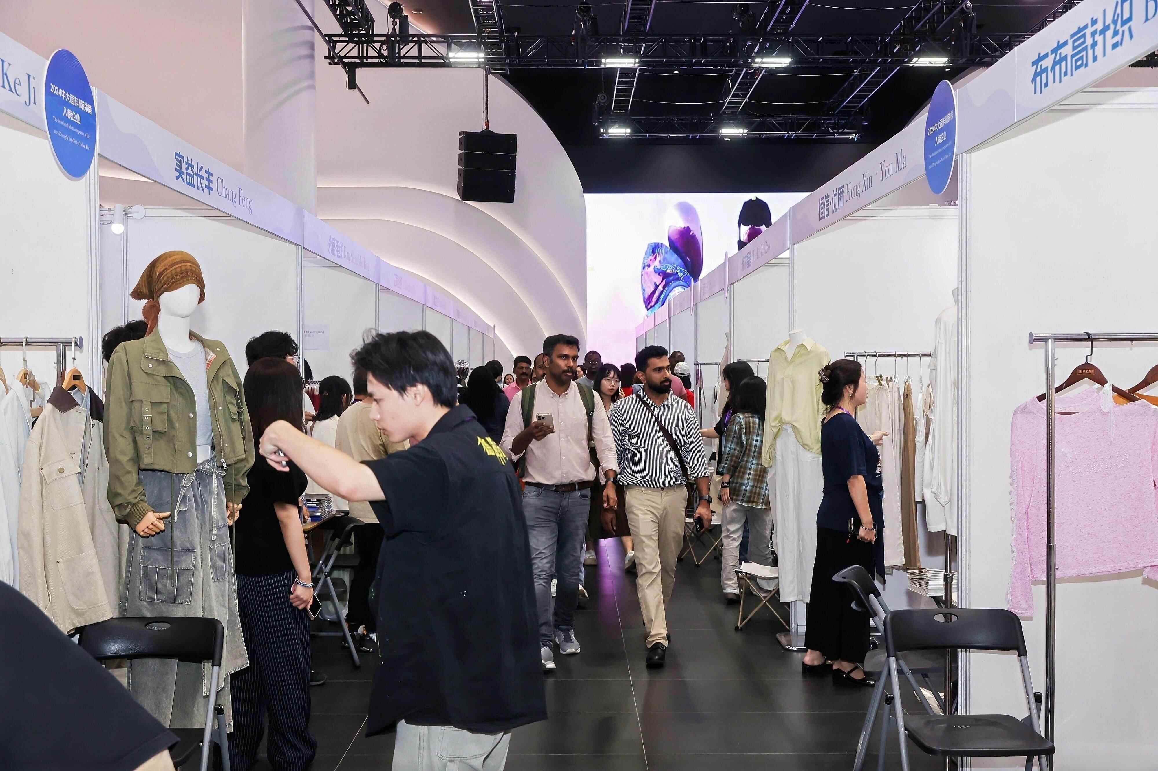 现场共有38家优质纺织服装企业携新品惊艳亮相,涵盖高端成衣、创意面料等品类,更有“2024中国面料创新竞赛——中大面料精锐榜”入围产品展出,展现了海珠纺织服装产业的创新实力与时尚魅力,彰显了中大纺织商圈时尚面料及服装的潮流引领力,吸引众多国际采购商驻足洽谈。