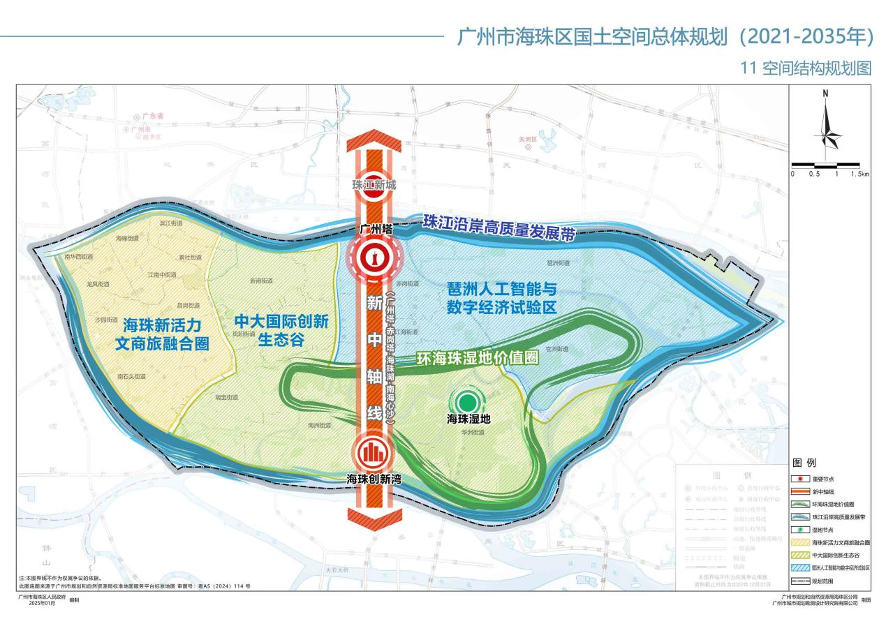 规划引领抢占发展“制高点”。海珠区统筹区域产业空间规划,高标准编制区级国土空间总体规划,精心谋划“总体规划-专项规划-详细规划”规划体系,构筑形成海珠“一轴引领、两环带动、三区支撑”空间格局。
