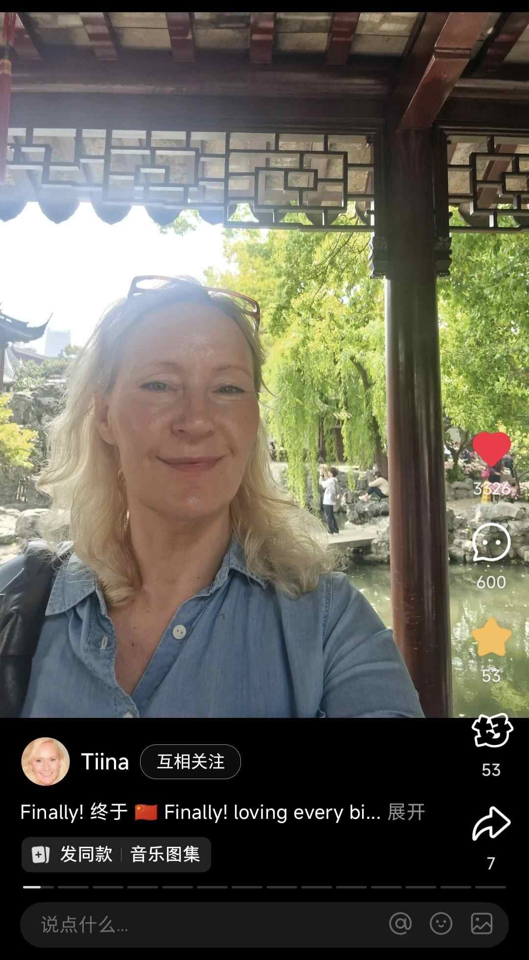 Tiina在社交媒体平台晒出游玩中国的经历。受访者供图