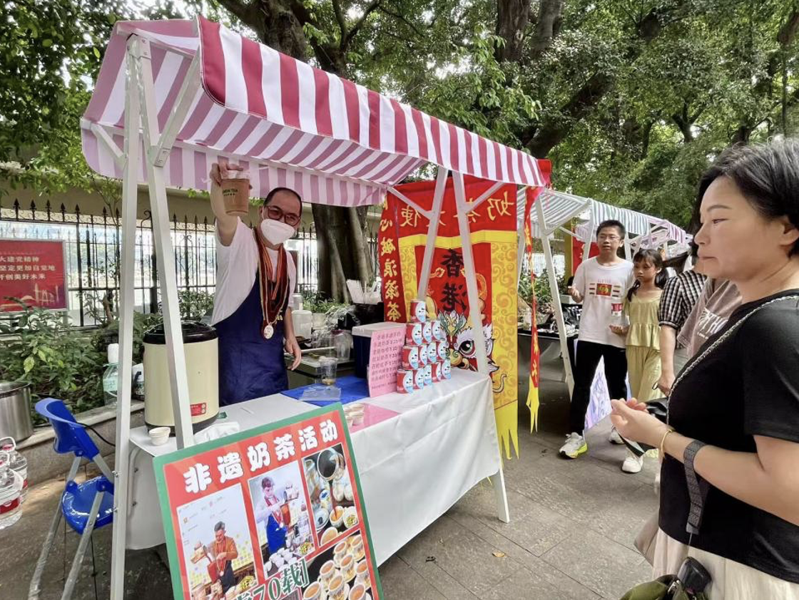 惠民市集区搭建了农产品销售平台,清远黑糯米与荔湾泮塘钵仔糕同时亮相,从化蜂农的荔枝蜜邂逅了芳村茶叶城的醇香普洱。丝袜奶茶吸引了市民游客的目光,驻足品尝,并掏出手机记录拉茶过程。