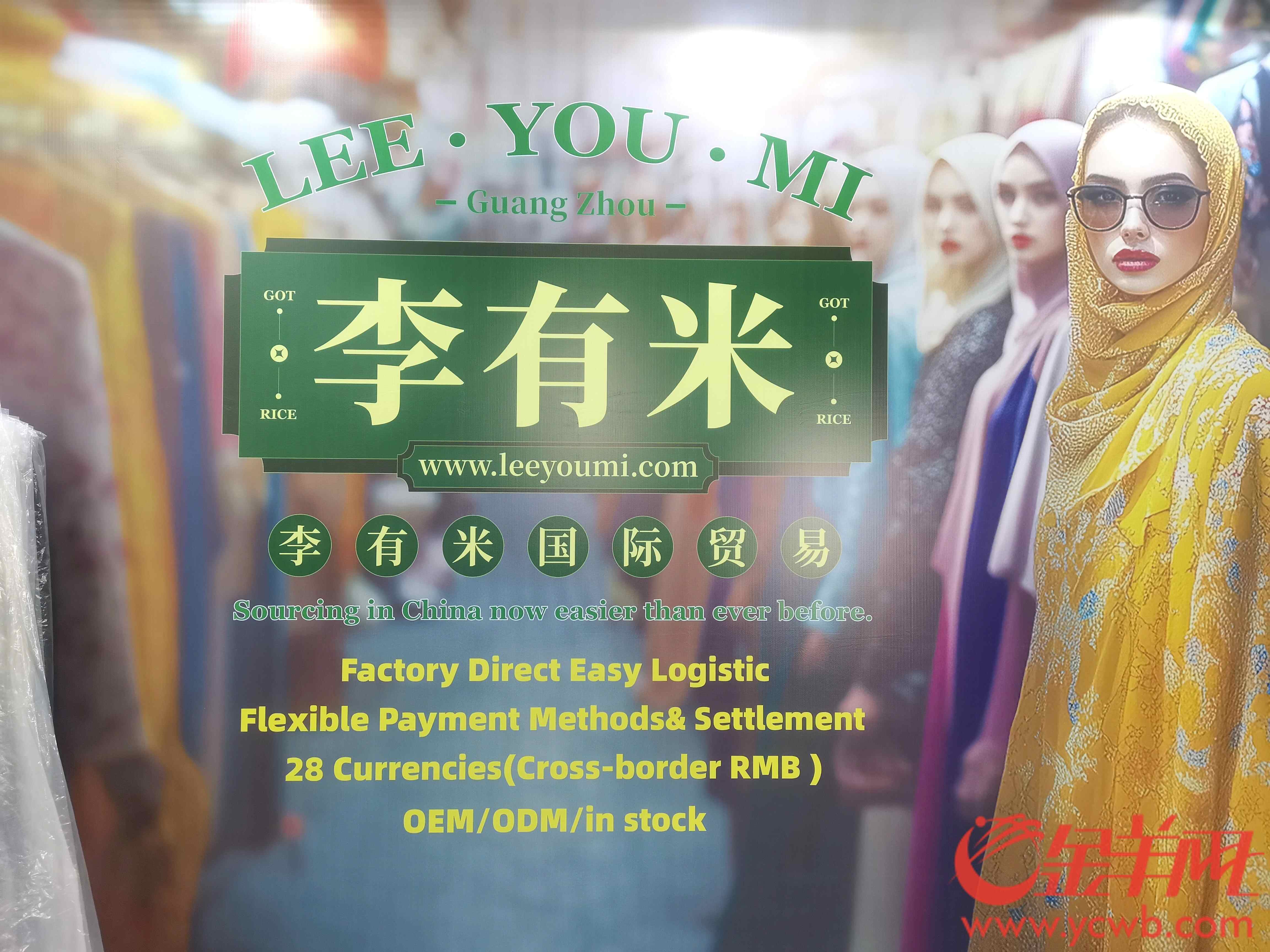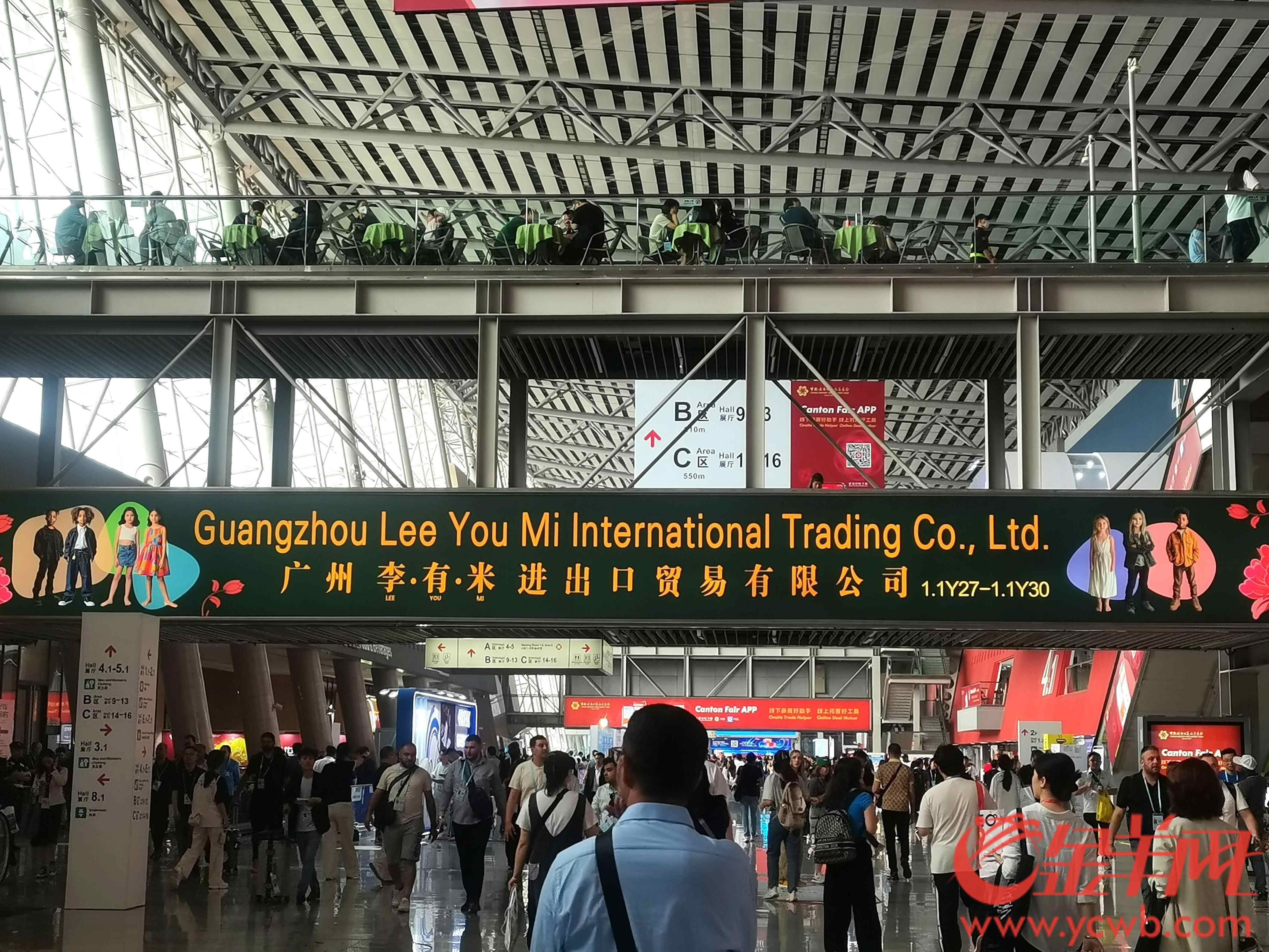 在A区珠江散步道的显眼位置,“广州李有米进出口贸易有限公司”的一条长横幅广告吸引住大家的目光。该公司是流花服装专业市场专门设立的外贸综合服务企业,这已经是该企业第二次走进广交会展馆。公司相关负责人表示,通过展位特色设计及免费汉服试穿来引流,将意向较大的采购商引流至馆外的专业市场。