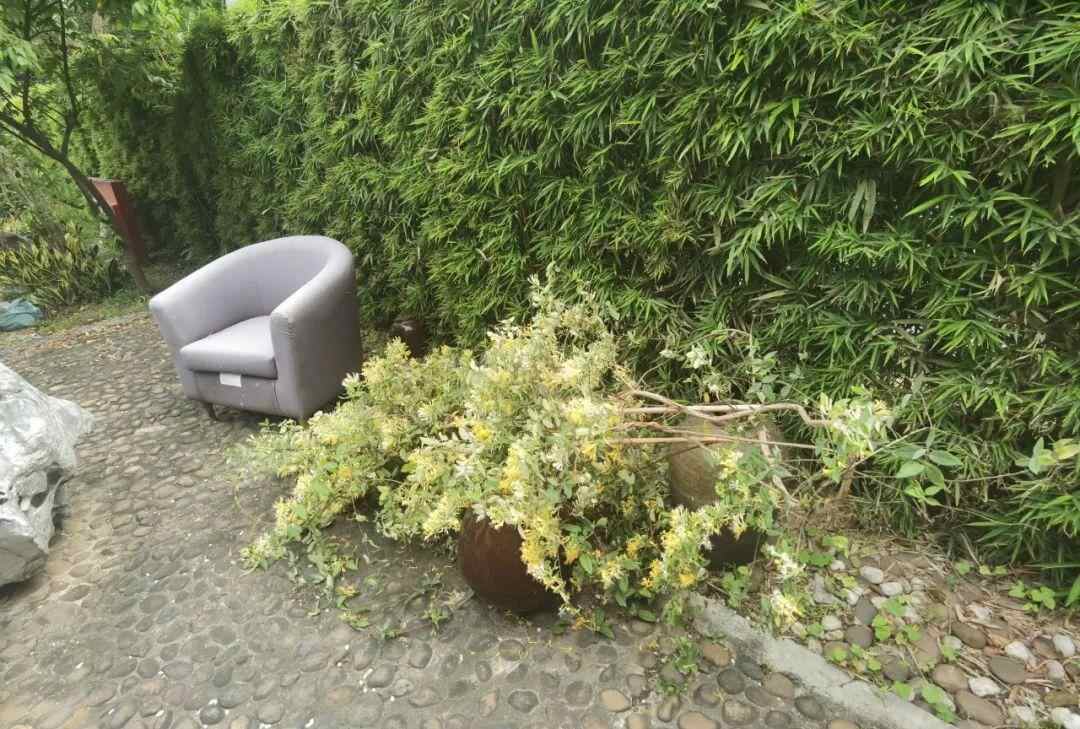 下午回研究院。那棵从翁城搬回来种了两三年的金银花开得太盛了。因为风吹雨打,已经随竹竿倒地,但无损其繁茂,清香浓郁。也给研究院里从翁源搬回来的兰花一一浇上了水。