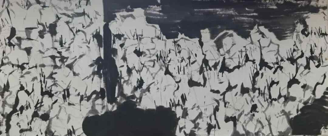 闲着无事,看着墙上丈二大纸,一时兴起,挥笔作《赤壁赋》。不应该画小艇,因显得小气,亦不能画从人舣船待东坡,干脆只画石头、天空和水,天空是黑的,水涂得更黑,石头则一片白,丈二,够大的了。流野看了,说:不应该是煤矿赋吗!也有道理,哑然失笑。