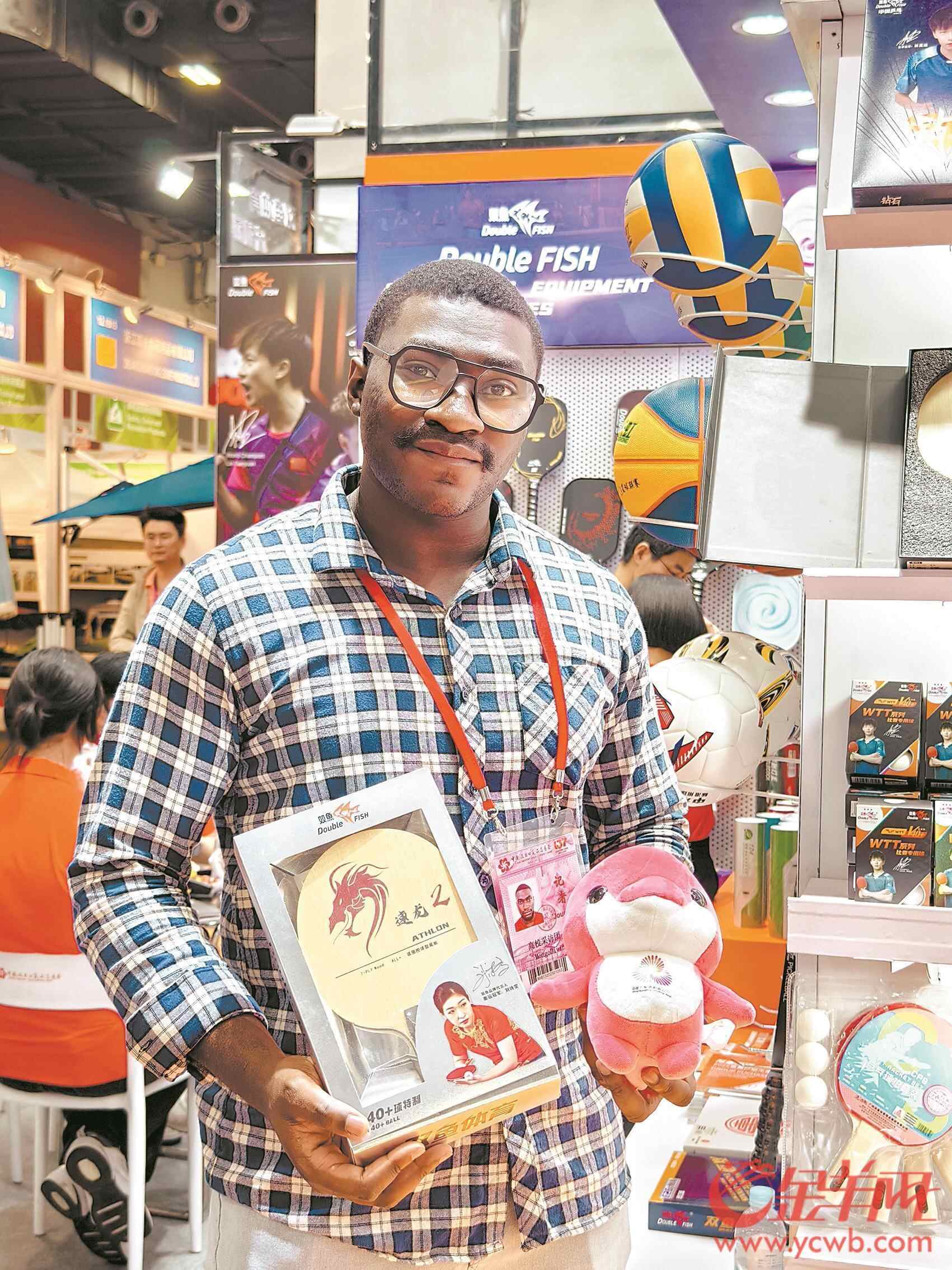走进体育用品区,一台乒乓球智能发球机前围满了外国采购商,蒙戈也上去体验了一把乒乓球“特训”。只见发球机不断向各个角度发射出不同力度的乒乓球,使用者要想一一接住,注意力与球技缺一不可。这是来自广州双鱼体育用品集团有限公司的一款产品,双鱼体育也是第十五届全运会乒乓器材独家供应商。相关负责人表示:“十五运会将极大促进体育产业发展,我们非常期待本届全运会。”
