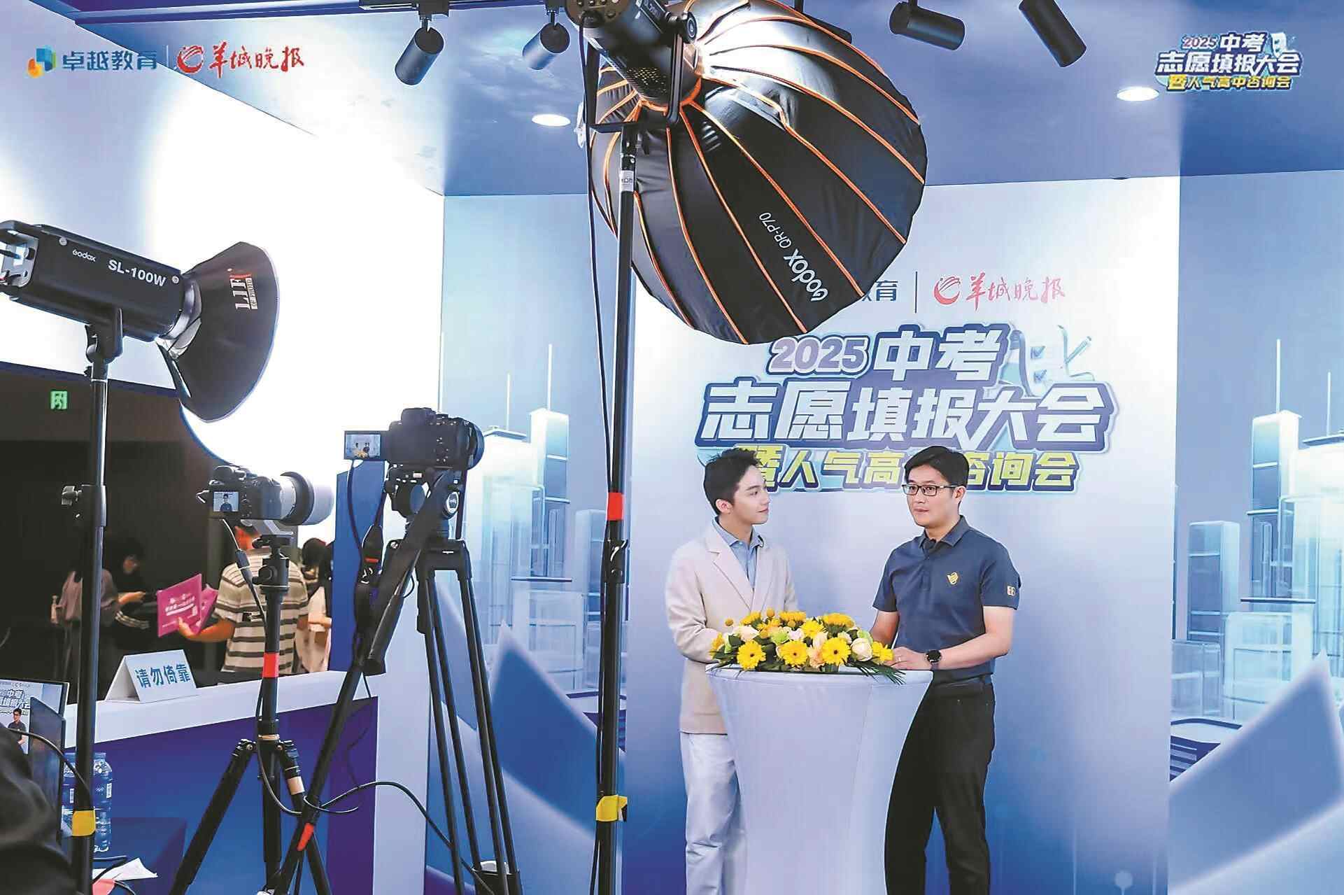 参展会场外,羊城晚报特别搭建的人气高中直播间,吸引了近30所学校招生负责人走进来,快问快答,分享招生咨询。羊城晚报短、平、快的短视频传播,让考生和家长快速了解学校招生计划。此外,当天特设的讲座环节,有专业老师对中考志愿填报进行深入剖析,为考生和家长提供针对性的填报建议。
